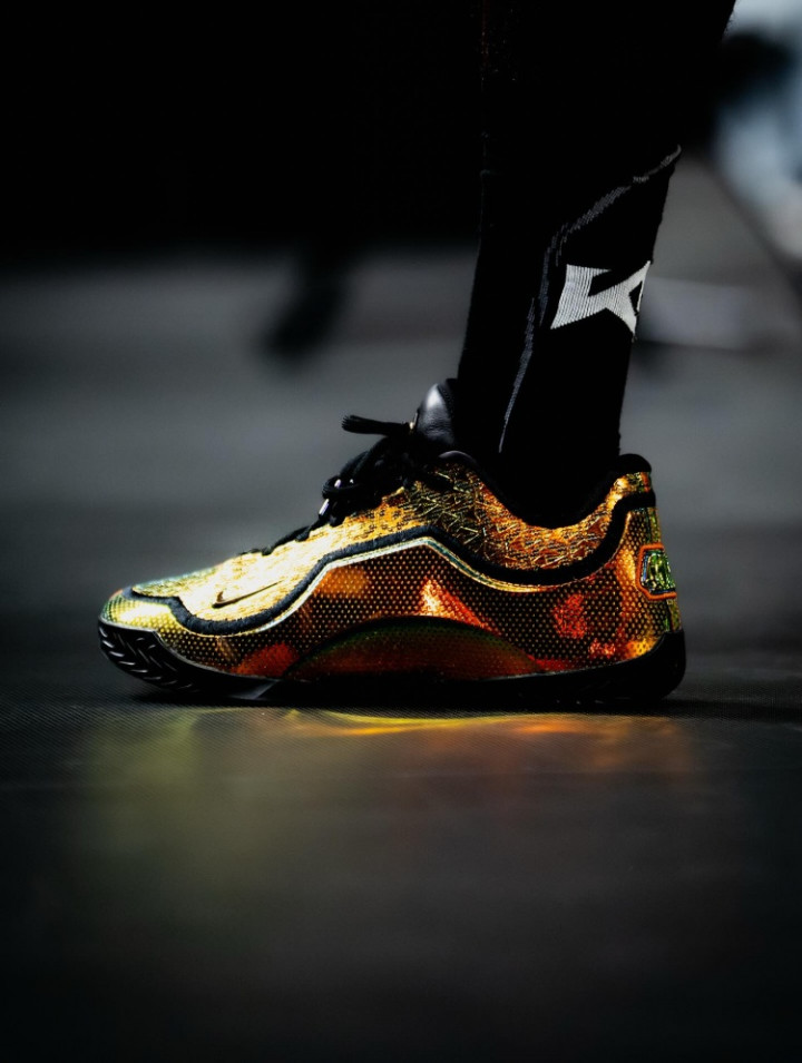 纳恩配文写到:“为这双还没发售的鞋子打call(注:践诺上已极少发售)!詹姆斯40000分@LeBronJames。”