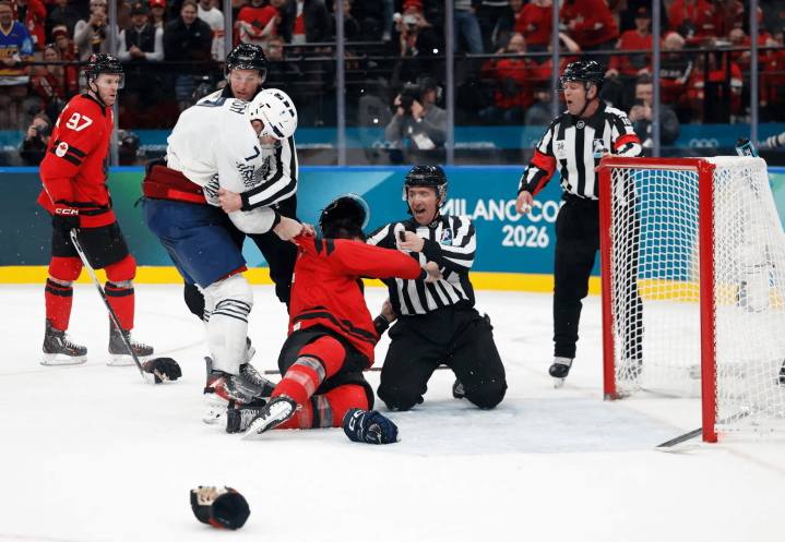虎扑02月16日讯米兰-科尔蒂纳冬奥会须眉冰球小组赛加拿大对法国的比赛末段出现本届赛事首场打架打破。加拿大时尚汤姆-威尔逊在第三节后段与法国球员皮埃尔-克里农发生肢体打破并升级为互殴,裁判依据国外冰联步伐对两边均作念出严厉判罚,两东说念主均被判比赛违章获胜罚下。