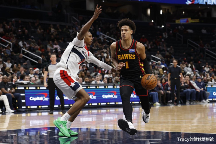 老鹰力克奇才,杰伦-约翰逊再度化身全面战士。首节他就取得11分3篮板3助攻1抢断,上半场投篮10中7,三分3中1,罚球1中1,也曾砍下16分7篮板6助攻2抢断。