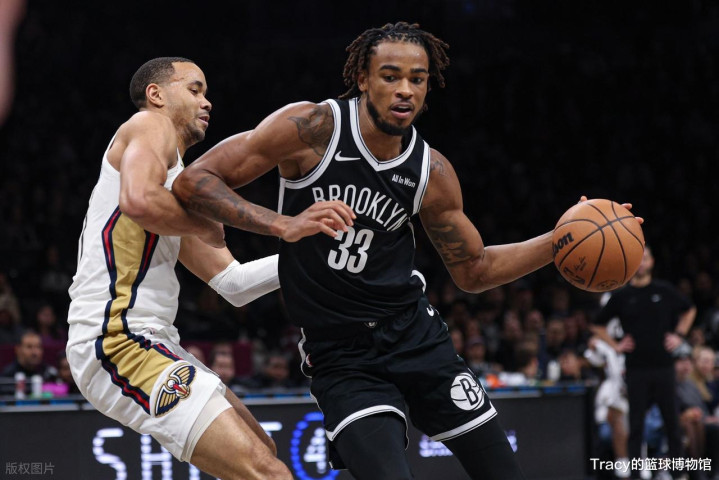 据统计,这是21-22赛季杜兰特和哈登后,篮网首位单赛季至少2次三双的球员。